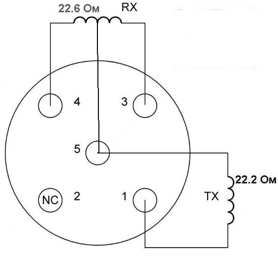 change the wires tx <>rx. there is used differencial inputs of preopamp. so middle/general point ground related to RX winding.