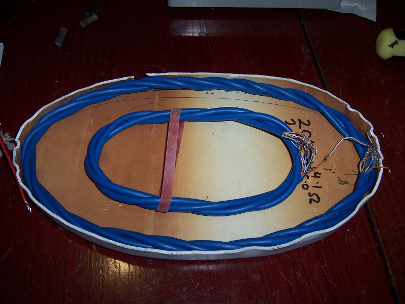 This coil is very light-255gms. You can make the mold any shape you like, then cut a length of thin walled pvc downpipe, split, then heat in oven to 180c. Lay flat and cool. Cut to shape of mold with 20mm oversize. Re-heat to 180c. Push into mold with former. Make sure former is filed down to allow for thickness of pvc- a bit more, so it's a loose fit. Trim even to depth-don't worry about the wavy edge, the silicone will cover it. Place the wire and foam inside.Cut several layers to fit inside coil, then one(or as many as needed) fullsize on top and bottom.Cut another piece of pvc for the top, and heat and flatten it. Leave it square. Clamp and glue with white silicone, inside and outside join, allow a few days to dry fully, then trim to shape, leaving 1/8 inch bigger than base, so silicone has extra to stick to.