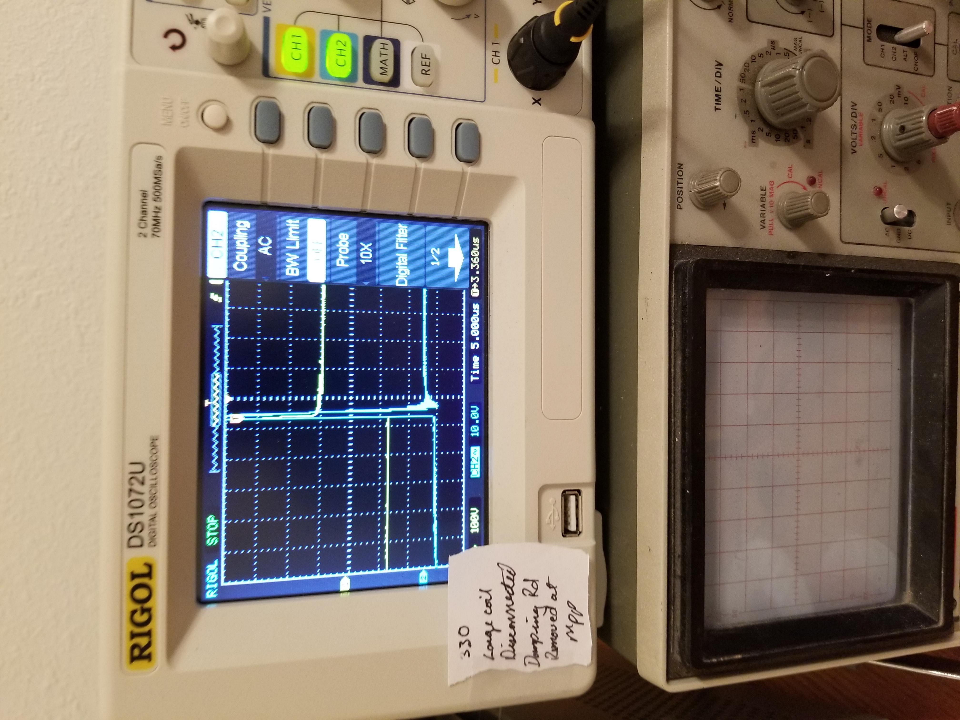Try running two simulations, one with only the external Rd in place, and the second with only the inner Rd. In both cases there is a lot of ringing. You need both resistors to quieten things down.