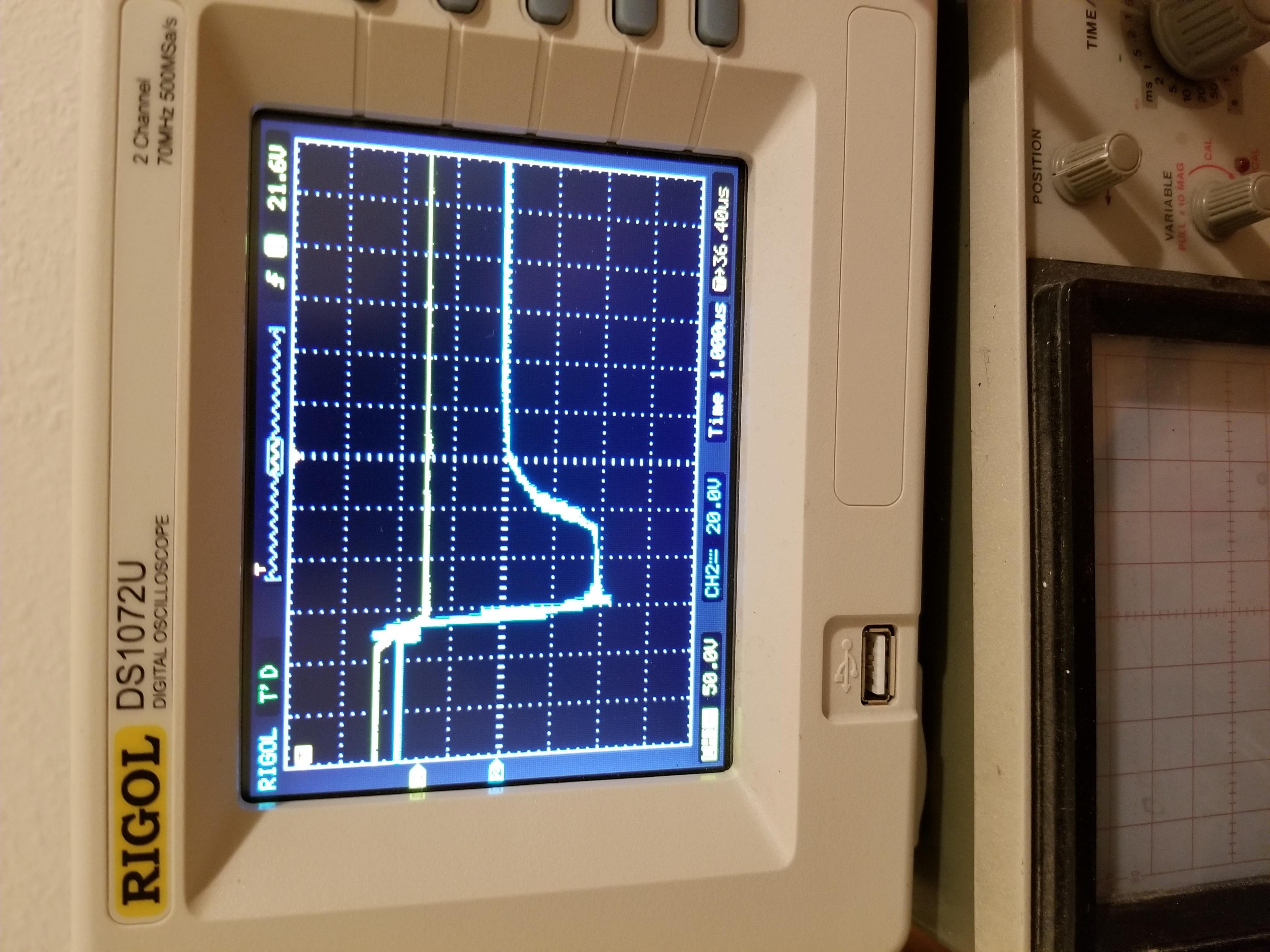 Lying both lops there you can see the Tx flyback on both coils Its hard to get voltages to match due to probe positioning but you can see the end decay is the same between the coils.