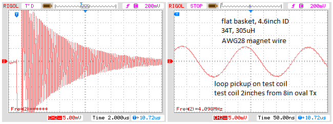 test coil was 2inches above operating 8inch oval Tx PI coil.