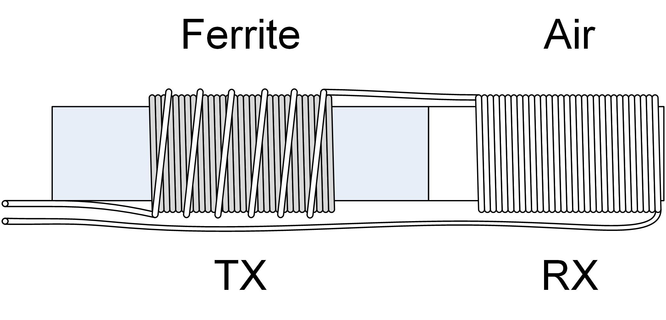 I slid that onto a 100mm long ferrite rod, and kept the coils near the end, and tried to balance it up, with TX in the middle, and the RX coil in front, and nulling coil in the back. All 3 coils were wound approximately the same (400 turns). I found of course the ferrite significantly altered the inductance of the coils as measured individually, and depending on where they sat on the rod. So I ended up with the RX coil first, TX immediately behind (and right against it), and the null coil behind that, spaced about 1cm away...