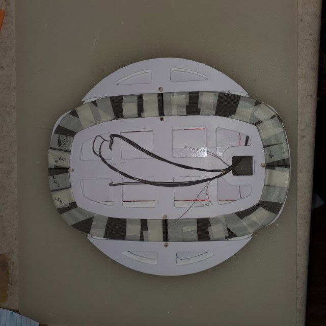 I then stacked the 3 flat spiral coils and connected them in parallel, resulting in a coil of 315 uh, 0.6 ohm, with a coil thickness of 3.7 mm.