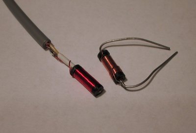 1st pic - right - original choke coil. left - rewound and soldered to cable