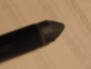 I needed a nice hard probe tip since the fiberglass tube is strong but not very abrasion resistant. A hard tip helps to identify metal objects when you are probing as well. The solution was to use another piece of ferrite from a larger coil that was the same diameter as the fiberglass tube - 1/4". Ferrite also has the advantage of shaping the magnetic field and it will not mess up the detector as a metal tip would. I figured a bullet shape would be ideal - relatively easy to push thru the ground and with a thinned section that would slide into the fiberglass tube so it could be glued very solidly. I discovered that ferrite is extremely hard - none of my metal tools would touch it. What worked really well to shape the ferrite was a simple improvised lathe. I gently chucked the ferrite in an electric drill held in a vice and while it was spinning I shaped it with a Dremel tool and a cutoff wheel. The cutoff wheel will cut away the ferrite reasonably quickly and spinning the ferrite rod keeps the shape round. I strongly recommend eye protection and a respirator for this job - I don't know if ferrite dust is harmful to your lungs but I don't want to find out !