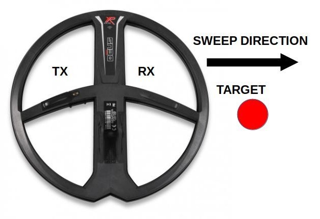When you sweep from right to left, a target will first pass under the TX coil and next under the RX coil.
