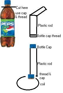 A) Cap of plastic Pepsi bottle, inner plastic thread cut from the pepsi bottle or any other plastic tubing or bottle with threads and end cap