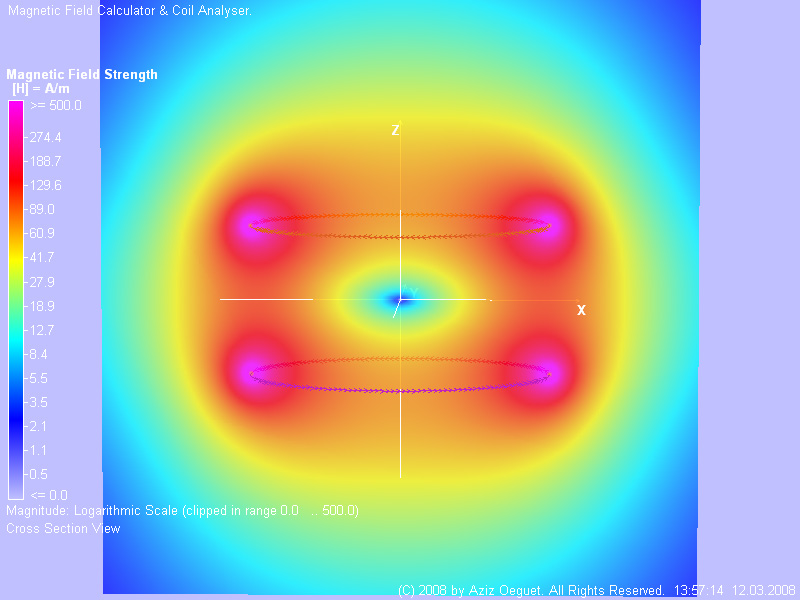 At the centre point between the coils is a null zone where a Rx coil could be sited and balanced.