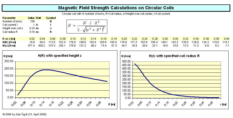 For all, who wants to experiment with coil diameter, magnetic field strength at a given height z, see attached files.