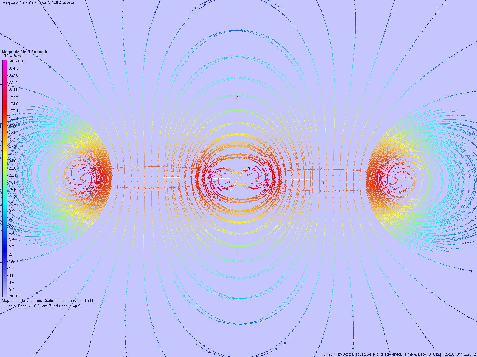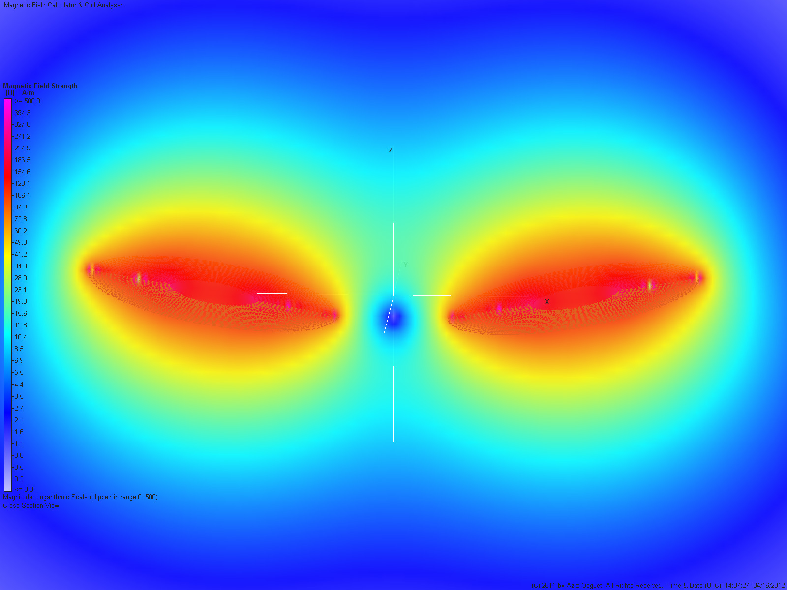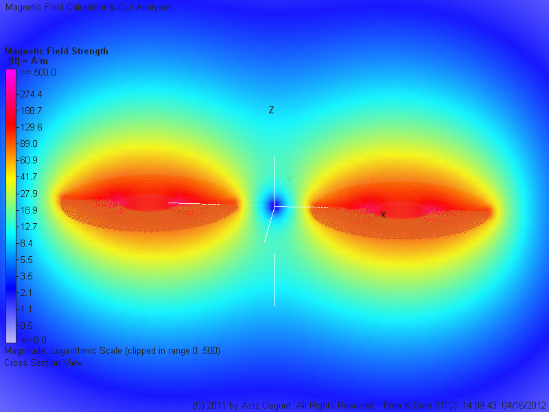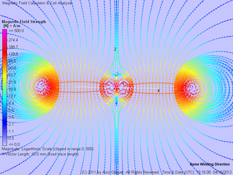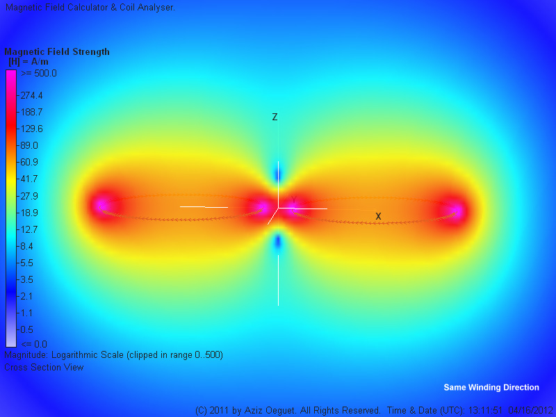 The TANDEM COIL also allows for an interesting variation of RX coil combination. One could use a single rectangular (or center tapped) coil across the 2 TX coils, where the physical structure would be reinforced as well as the RX would be balanced.