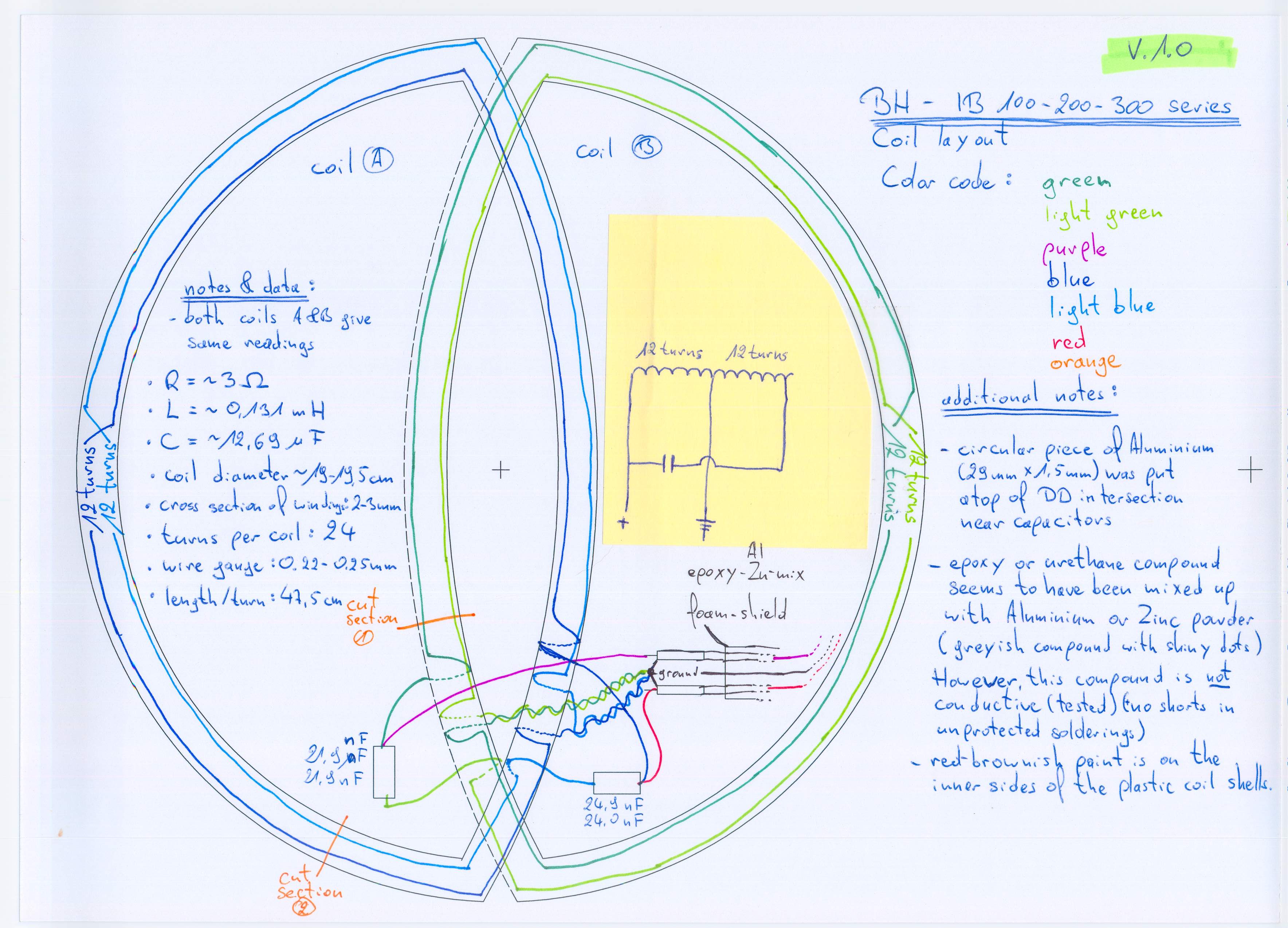 The dissection made possible to do the following drawing and to draw a schematic for an individual D coil.