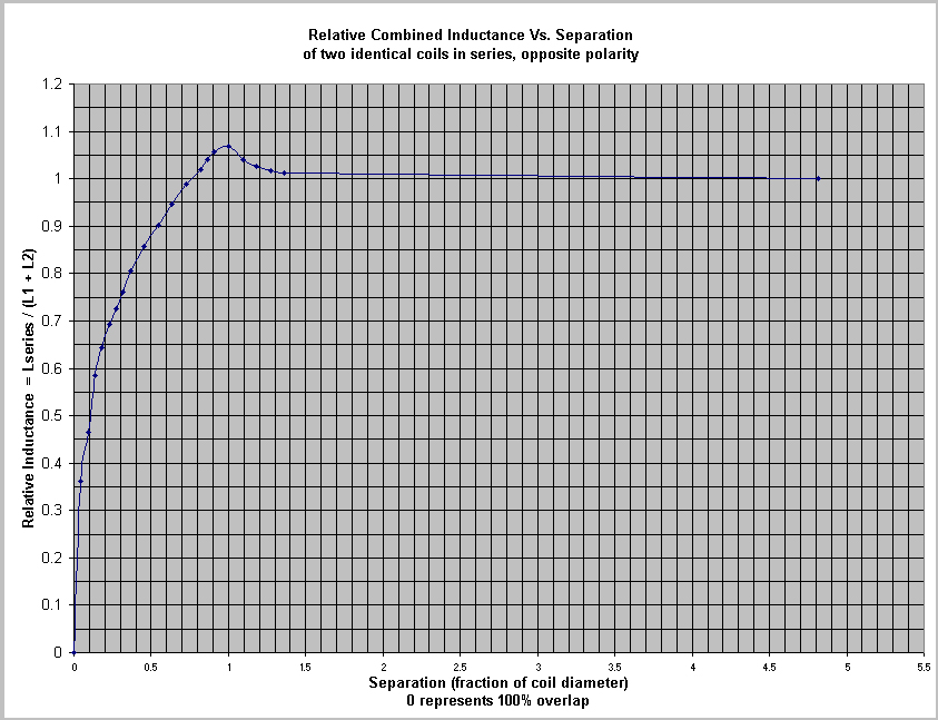 5. L5 Combined inductance coil1 -- coil2 (series), phased opposite: .156 mH (62% L1)