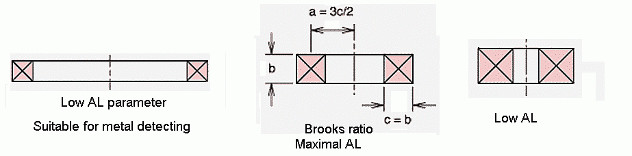 Brooks ratio is not suitable for design of efficient search head. The ratio is used to achieve maximal self-inductance at given length of wire (See[1] and [2]). However for metal detecting we need the opposite - minimal self-inductance at given length of wire.