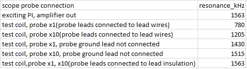 I don't know how anyone could repair or experiment without at least an oscilloscope and multi meter with capacitance measurement. Tried documenting a coil build this morning. I've been building IB coils so when I added the shield I grounded the shield only so all the numbers are without the coil grounded except when the scope is connected to the coil wires. After charting the data thought I should have grounded both the shield and one side of the coil for a mono coil. Maybe should have for an IB Rx coil. Should have for an IB Tx coil. My scope displays frequency. Recorded cycles/10div and time/10div to calculate frequency to compare with frequency reading if the scope didn't display frequency. Adjusted time base to get 10+- 5 cycles for the 10 div. Coil inductance is calculated from resonance and added capacitance. Some observations. Connecting the scope to the bare coil wires effects the resonance for a fast coil. Connecting the scope to the coil wire insulation doesn't. Not a good clean signal but usable. Wasn't expecting the not twisted lead wires to effect resonance as much as they did. Not sure how important knowing how fast the coil is but I think it's interesting knowing what effect shielding, adding the lead wires and others has on coil speed. Don't have a signal generator to compare procedure. Instrument calibration would effect comparing data person to person. Each time I try some of these PI measurements I see something I should have done different. I agree it would be nice to have a test procedure to follow. Amplifier out is the signal from the exciting PI.