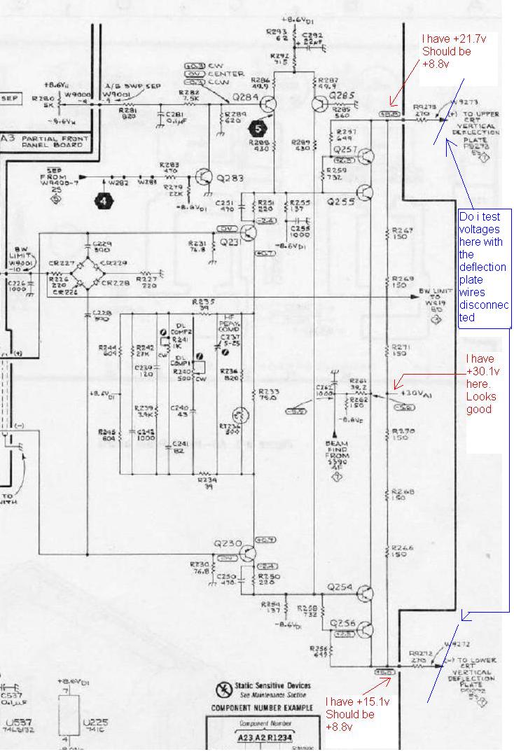 ... actually moved slightly further up on CRT.... therefore the service manual was referring me to the likely cause of fault in the Vertical amplifier section below.