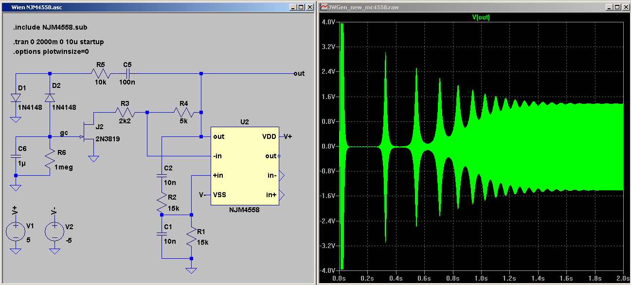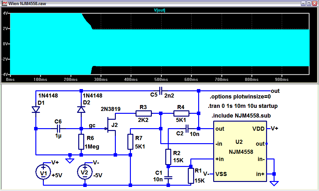 I recycled a wien bridge oscillator to show you how it works. This one is also for mikebg and his fascination with PID regulators in oscillator circuits - it acquires stability ... eventually, but only illusory stability - it will re-flutter once faced with any quick load change. Oscillator's envelope behaves as an integrator with constant slew rate, hence oscillation.