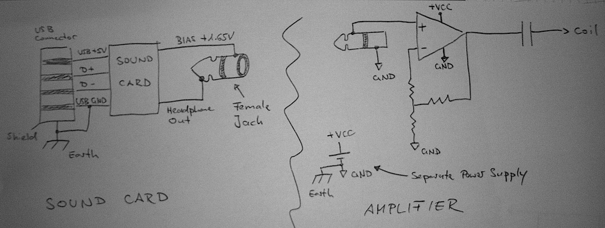 My goal is to use an external USB sound card for signal in and output for a metal detector. What I'm designing basically is an interface board that plugs between the USB sound card and the metal detector's coil - nothing new.