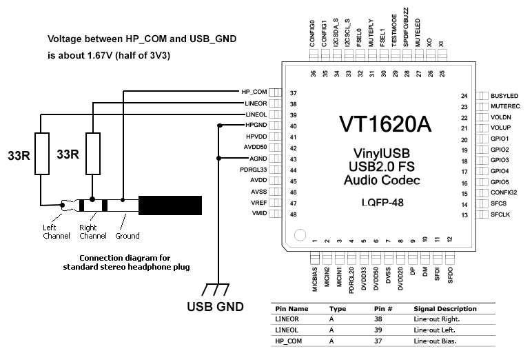 However, when I had a closer look on the output of the sound card I found out that the audio jack's sleeve is a virtual ground potential at ~1.67V (half the supply voltage) so the output signal swings from 0V to 3.3V, centered at 1.67V.