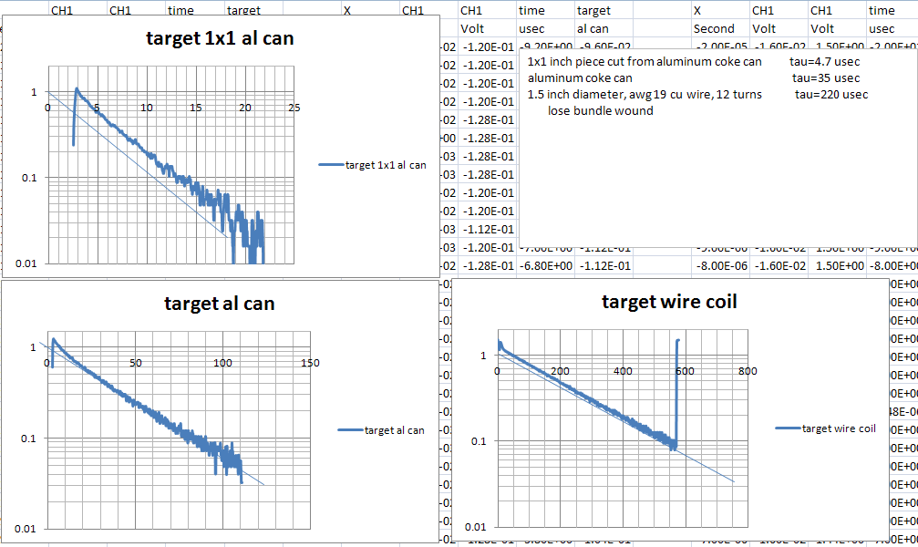 Don't know if it matters. All of my tests are static. Both the coil and target are stationary. The circuit is DC coupled, no capacitor coupling.Originally posted by Qiaozhi View PostI think you'll find that the Earth's magnetic field has no effect in an air test, where the coil is stationary and the target is in motion. This is because the EF does not change relative to the coil, but remains fixed. Any eddy currents that are generated in the target, due its relative motion within the EF, will be so weak as to be undetectable.