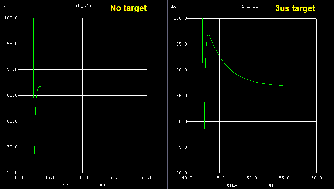 But... at the end of the flyback (Icoil near 0) the R of the current sink is very small. The coil is practically shorted and we cannot measure the voltage induced by the target.