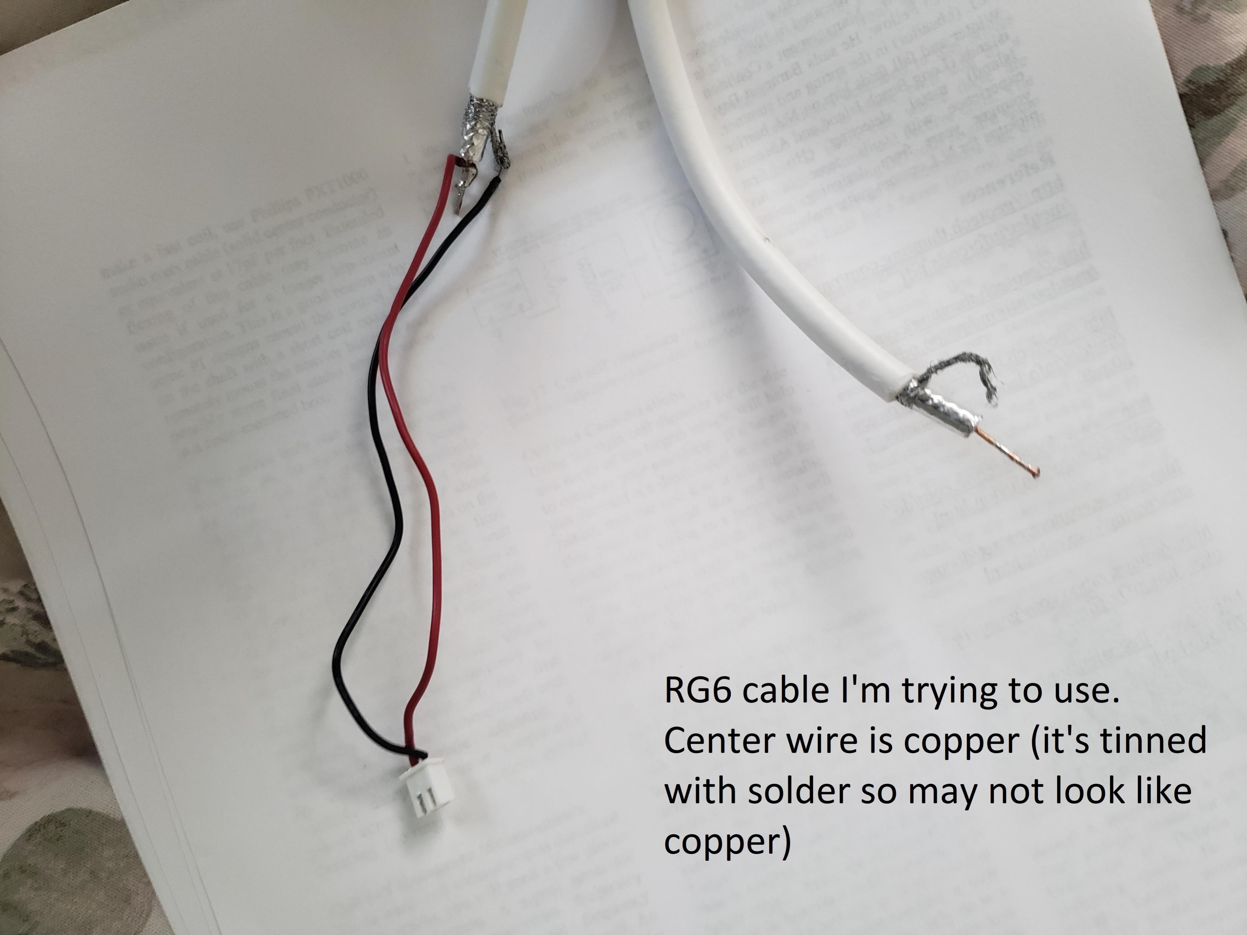 Oh yeah, one other thing...you had previously told me that I shouldn't use the RG6 that I have because it only has a single, thick copper wire in the center. Are you saying that there is another type of RG6 that has multi strand wire in the middle (don't think so), or are you saying I just shouldn't be using RG6 period? What type of wire should I be using to connect the coil to the board? Thanks in advance.