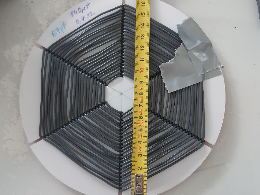 Coil: spiderweb type, 15cm diameter, 140uH, 67pF, 0.7 Ohm. Self resonance is 1.6 MHz (so I guess it has nothing to do with the 12MHz ringing).