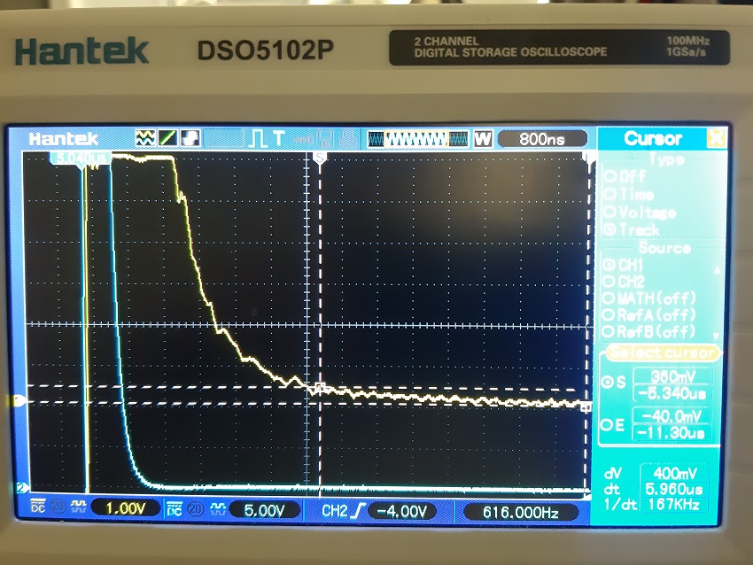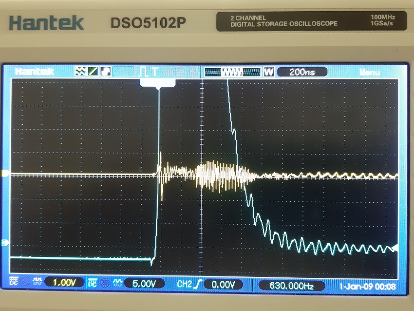 The timing is spot on but damn! there's a pesky 12 Mhz ringing that I don't know where it's coming from. It disappears if I limit the preamp bandwidth (feedback cap) but then the timing gets a lot worse. All suggestions are appreciated, where they're coming from, how to rid them without affecting the timing, etc.