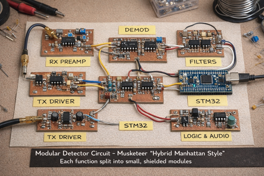 I started with protoboard but I suspect this technique can add noise and I'm thinking of migrating to copper-clad / manhattan style, is it a good idea for metal detector circuit prototyping?