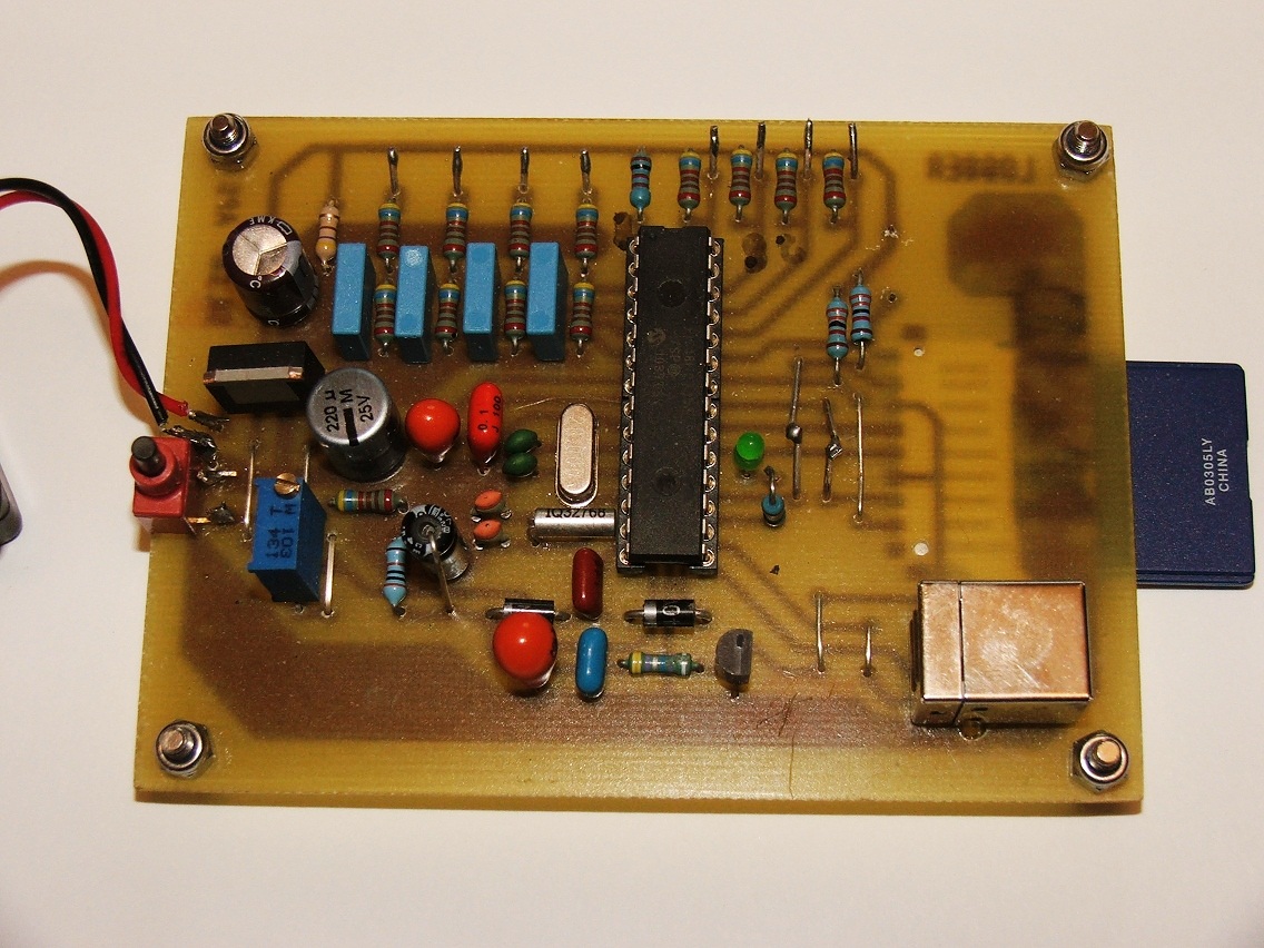 USB Data Logger, December 2010-February 2011: (1) In order to support baud rates greater than 57.6kbps (ie, up to 0.5Mbps), change the two 100nF monolithic capacitors on the A0/D4 and A1/D5 inputs to 10nF. (01/11)
