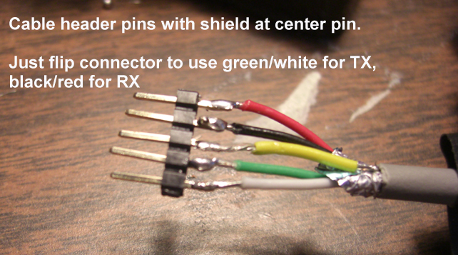 Attached are some photos. Note that the cable shield wire is the yellow one and is free. I can plug it in to either end of my socket. Note also the end socket pins are soldered to the one next to them. That way I can choose which wire, green or black, is connected to the shield at the coil.