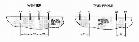 Twin pobe setup is good for exploring already known and given area on which you may expect something to find. This setup is also good for series of measurements with various distance between probes (resolution/depth). Before any measurements, man must form precise matrix on given area and than repeat all the measurements in same manner.