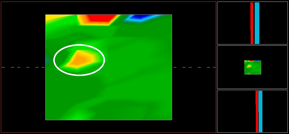 I put a non-ferrous metal(20*20metal area/Height10cm) in depth of 2 meter to soil for 1 year and after 1 year i scan this area .