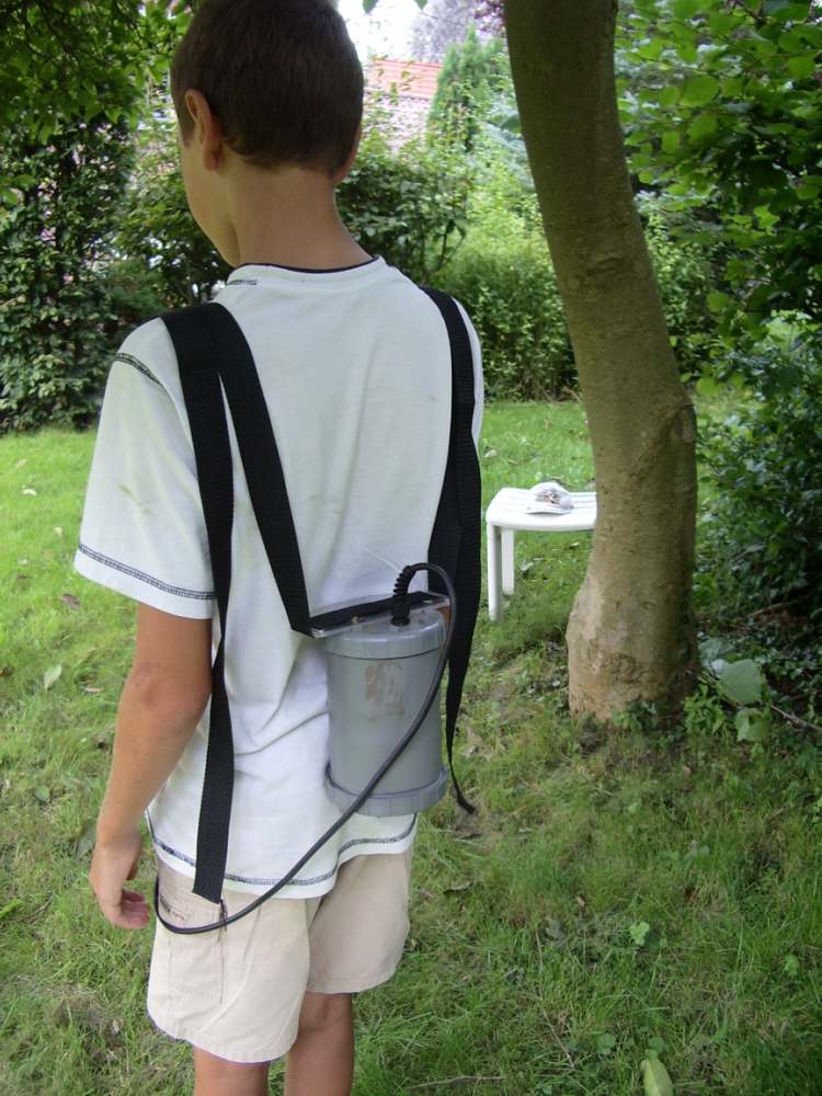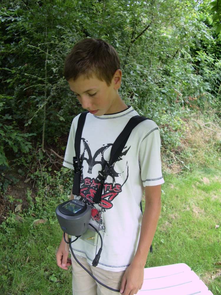 A last option which is also possible and easy to implement is to carry the instrument on the chest, the battery on the belt and the sensor in a backpack. This option would be the most compact of all and would accept rather heavy sensors but we have not yet verified whether the closer proximity of the three main components of the instrument does not generate any disturbance of the signal quality.