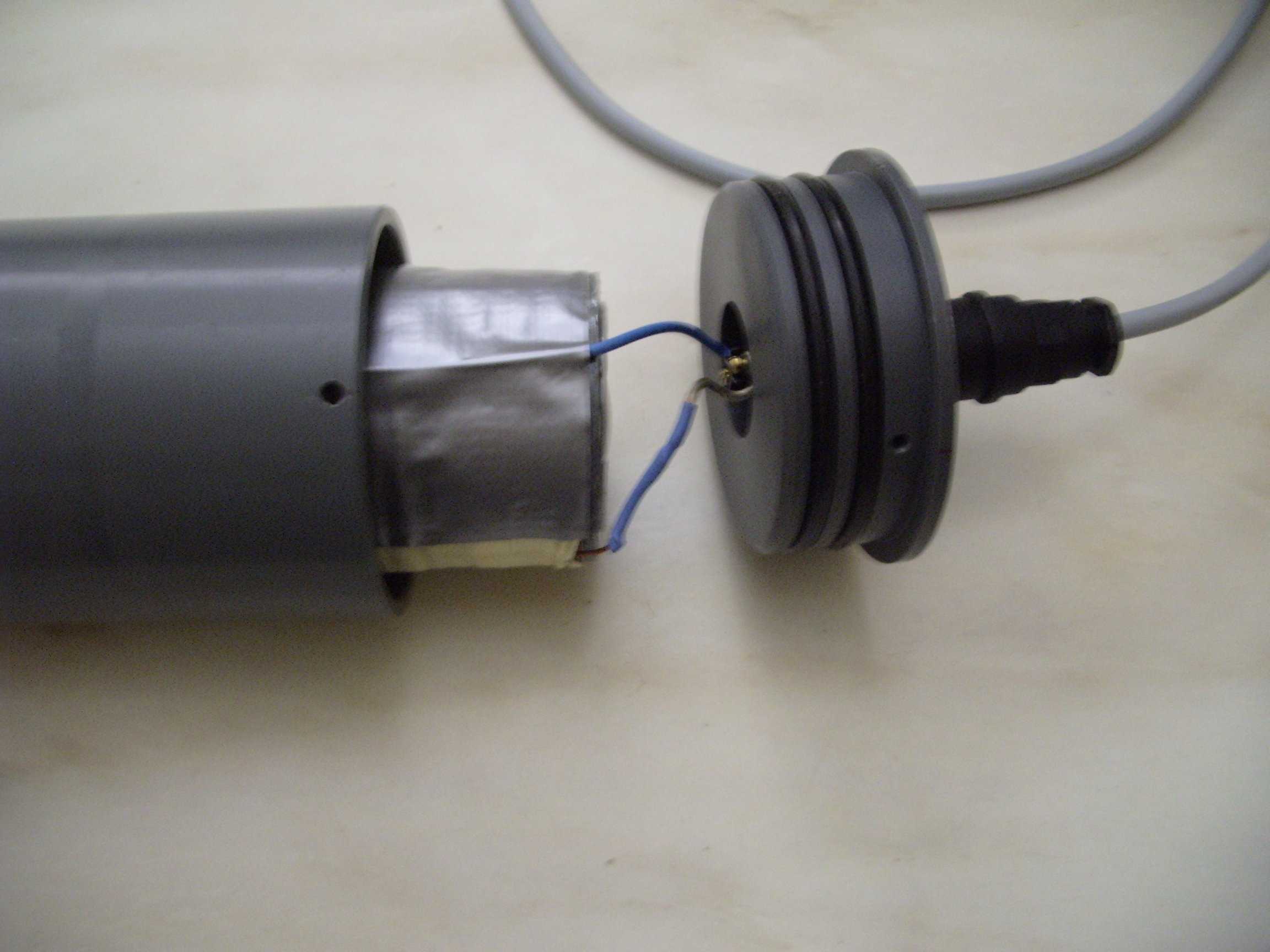 We have found that it is not really necessary to make the complete fish as a pressure-protected ccntainer. We are designing a small container with its dimensions selected to fit our sensor coils in in-line configuration. It is built from a section of high-pressure PVC pipe (90mm outside diameter, 7mm thick walls) closed with two machined caps each with double O-rings. The cable goes through an IP68-rated connector guaranteed to support 100m depth for several hours. The sensor container just needs to be inserted inside a fish made of simple PVC pipe with a nose and fins on which the lead weights and the towing cable have to be fixed.