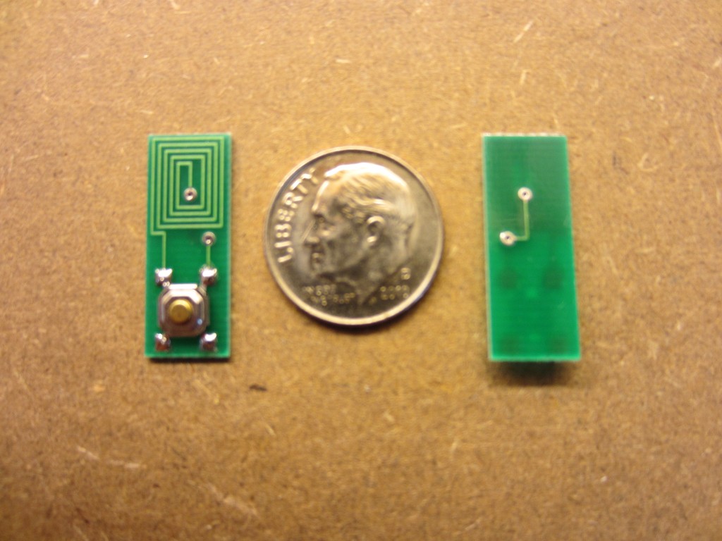 Picture #1 is an early prototype. You can see the small coil I wound and potted with a bladder type switch similar to the kind found on early TV remotes.
