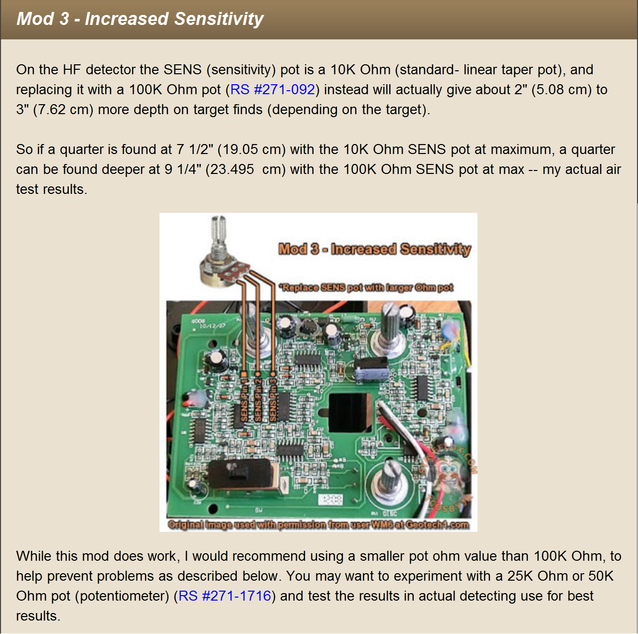 - Sensitivity potentiometer changed to 100K to allow more power/greater depth