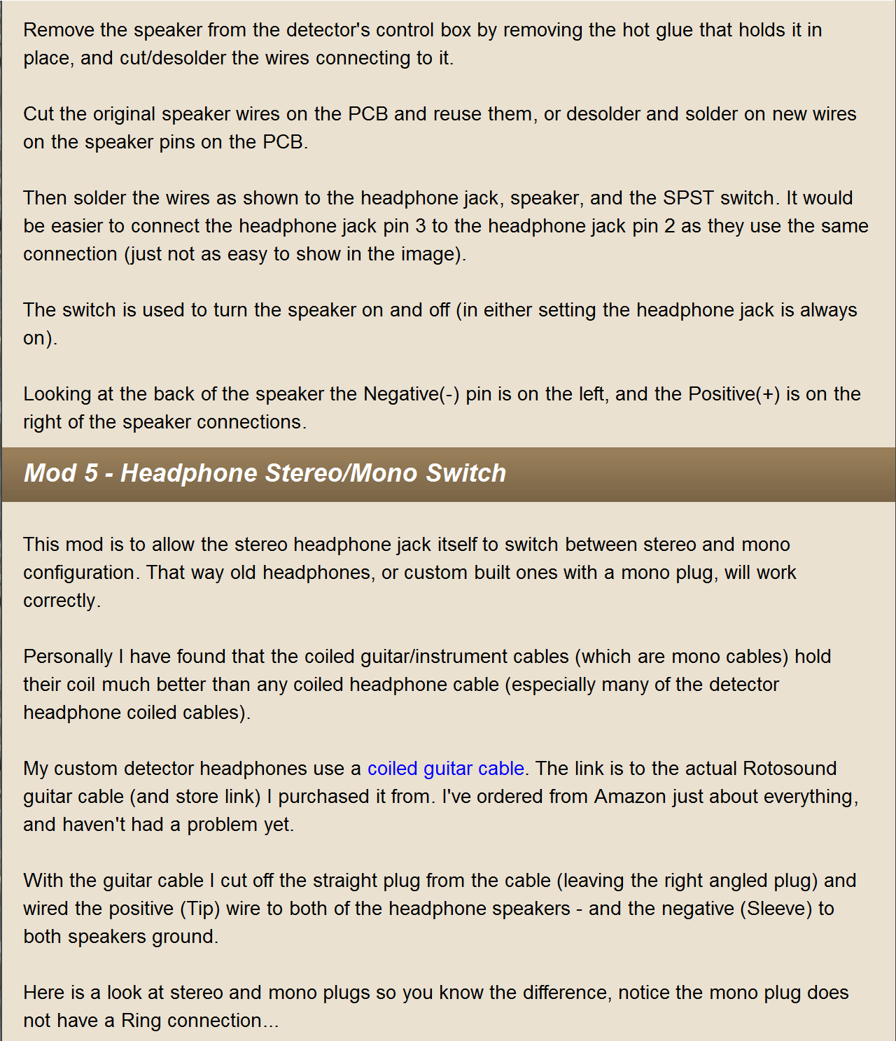 - Headphone jack changed to standard metal detector 1/4" size (6mm) and added to the end to prevent tangles/problems