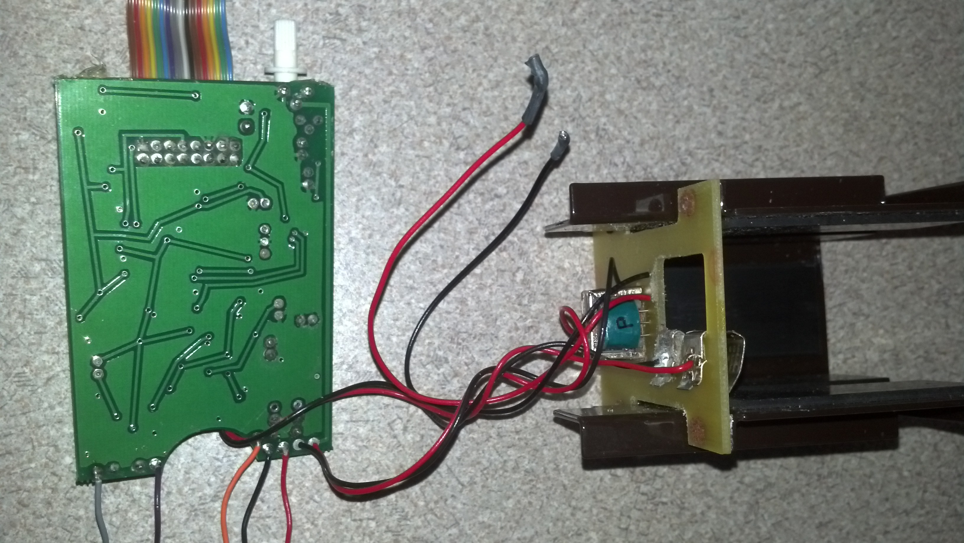 You said - the red wire from the PC board which was originally soldered to the metal nut on the original pinout connector.