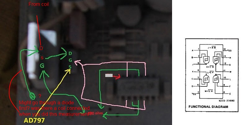 Sorry about that Mick, I rushed my last picture. If you can reloaded the updated picture, I would like to ask you if you can tell me if my proposed pin arrangement of the 4093 IC is correct. I based it on the diagram to the right of the photo, and not ground, vcc paths. However, I did my best to trace the flow of continuity as correctly as possible.