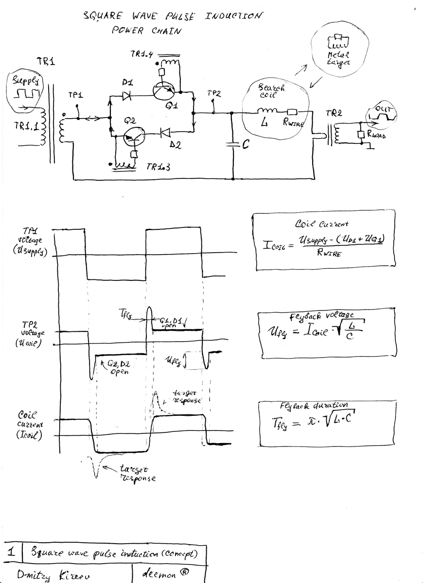 Today I want to show one interesting idea that I found when I finished my previous design . I mean that recuperative PI device , published here - http://www.geotech1.com/forums/showt...y-recuperation As you remember , the main idea of that detector was not to stop the coil current after the charge interval , but to reverse it and store the current in the coil , keeping it constant for some time . This solution has some benefits - we can receive a double target response with the same coil current ( due to reversing the current ) , and another bonus - we can restore this coil current after finishing all measurements . So after the measurement interval we can return almost all the energy stored in the coil to the battery , during a special recuperation interval . And the target information we can get not by measuring the VOLTAGE on the coil loaded to the resistor , but measuring the CURRENT in the shorted coil . The whole idea looks quite attractive and works good enough ... but one day another strange idea came to my head