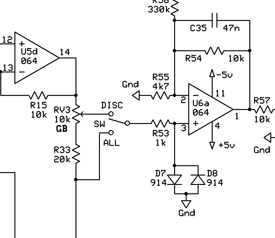 I have my doubts, about the time/logic scheme, in both channels must be equal, so that R20 should be 240K.