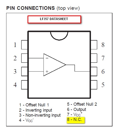 Considering the fact that Pin 8 in the op-amp LF357 is N.C!