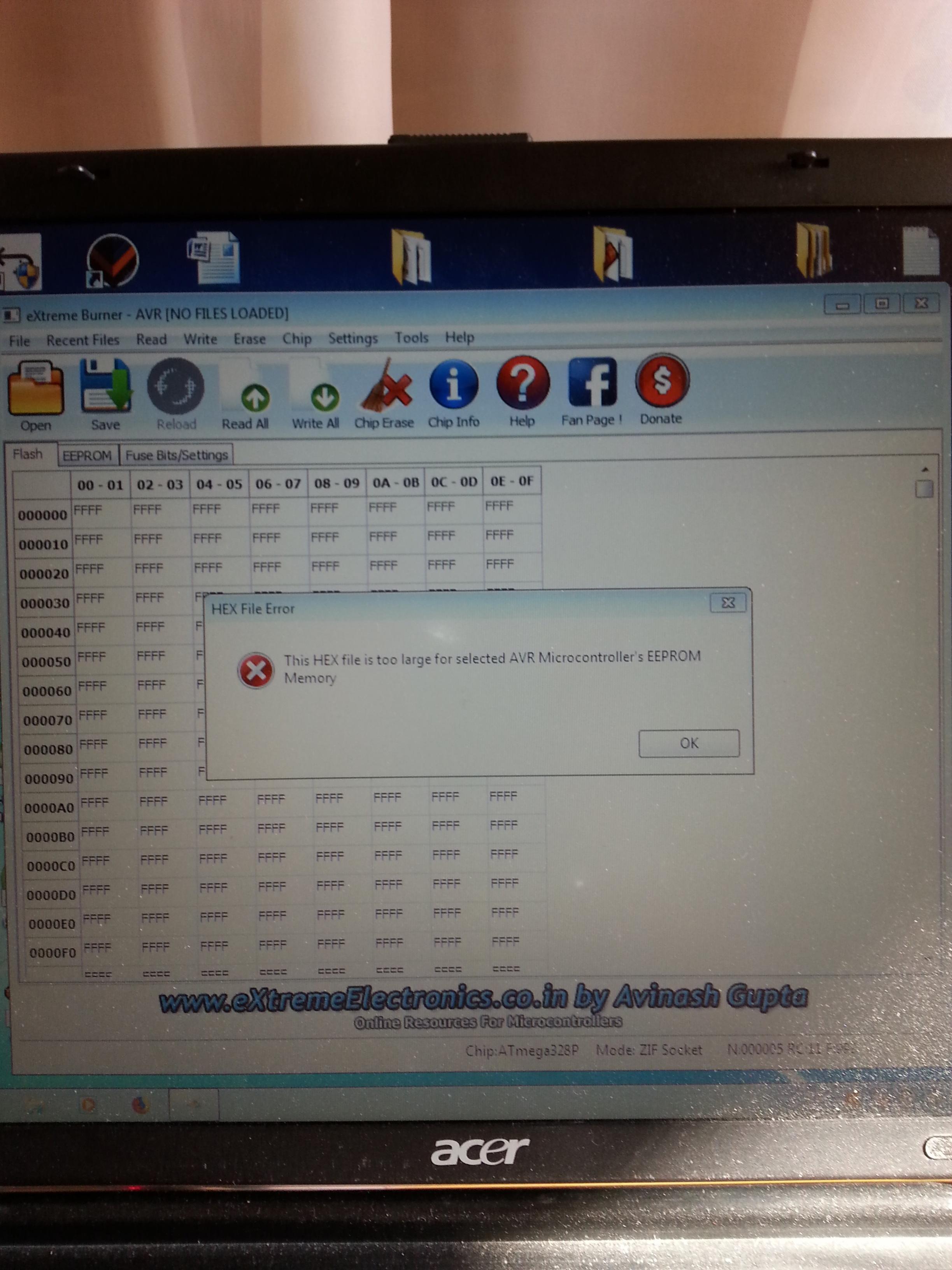 As the error message says the file is larger than mcu's eeprom..Did you try to "chip erase" ?? When my felezjoo counter locked i erased device reprogrammed the chip (on board i soldered miso-mosi-clock-reset and supply pins) and it went down smoothly,didnt have to use the "eeprom_clear" hex file posted above..Im not familiar with the software you re using..