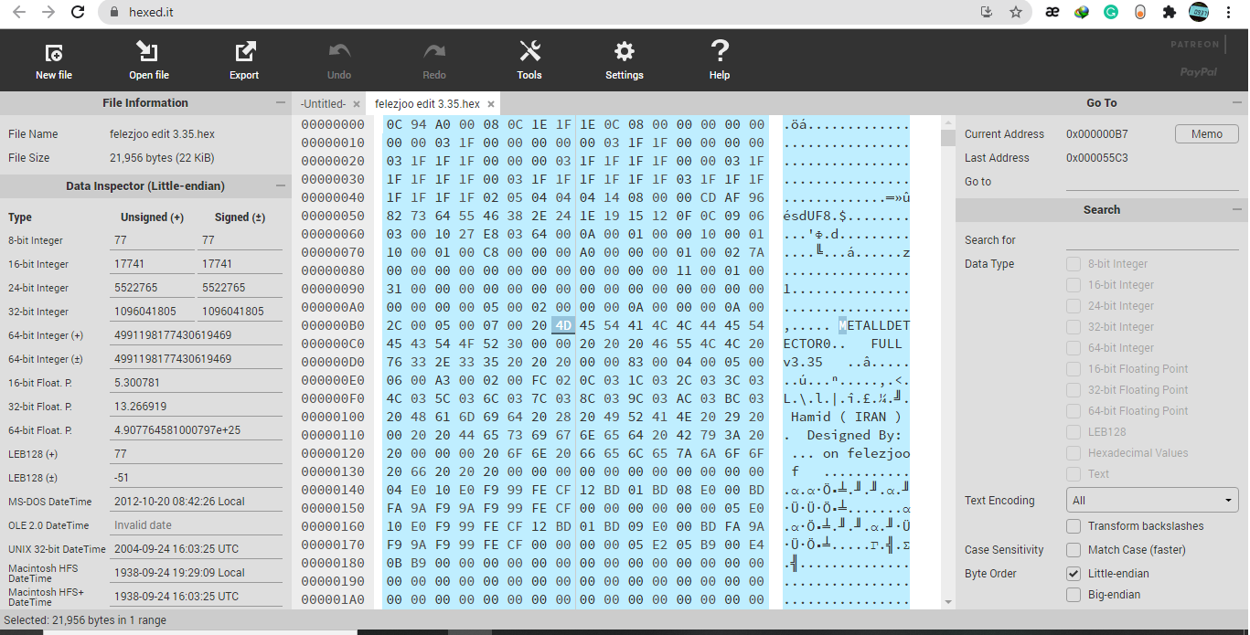 Then find the string you want to modify and save as eg "felezjoo_mod.hex".