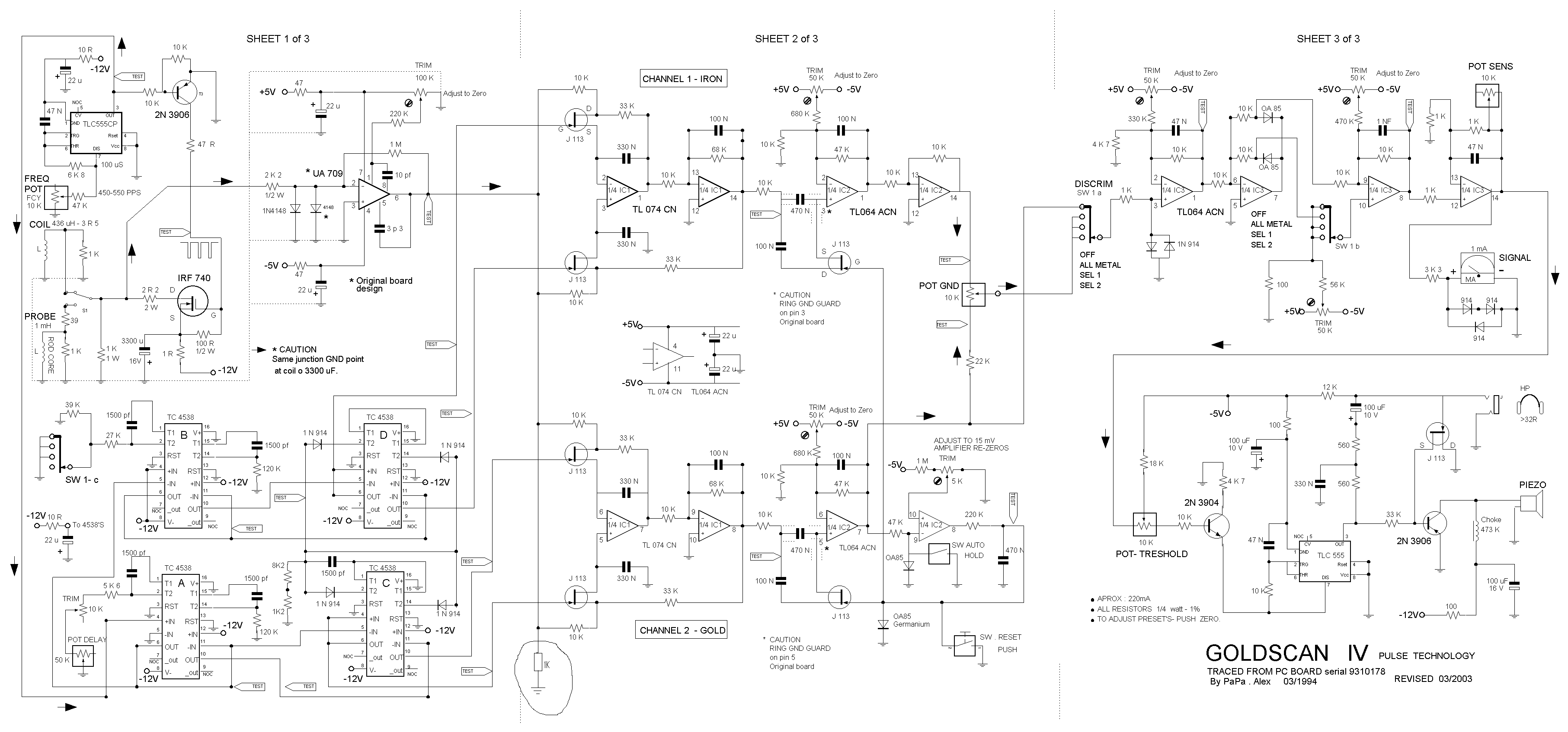 Hi Tim....I know the schematic you showed is pre goldscan 5...the hand drawn schematic you showed i believe is gold scan 5 but without the very important section of the audio schematic....i personally would love to own a goldscan 5 detector but out of my reach cause of second hand prices...the machines i would love to try out on the beach are the gold scan 5...white's tdi sl or tdi pro