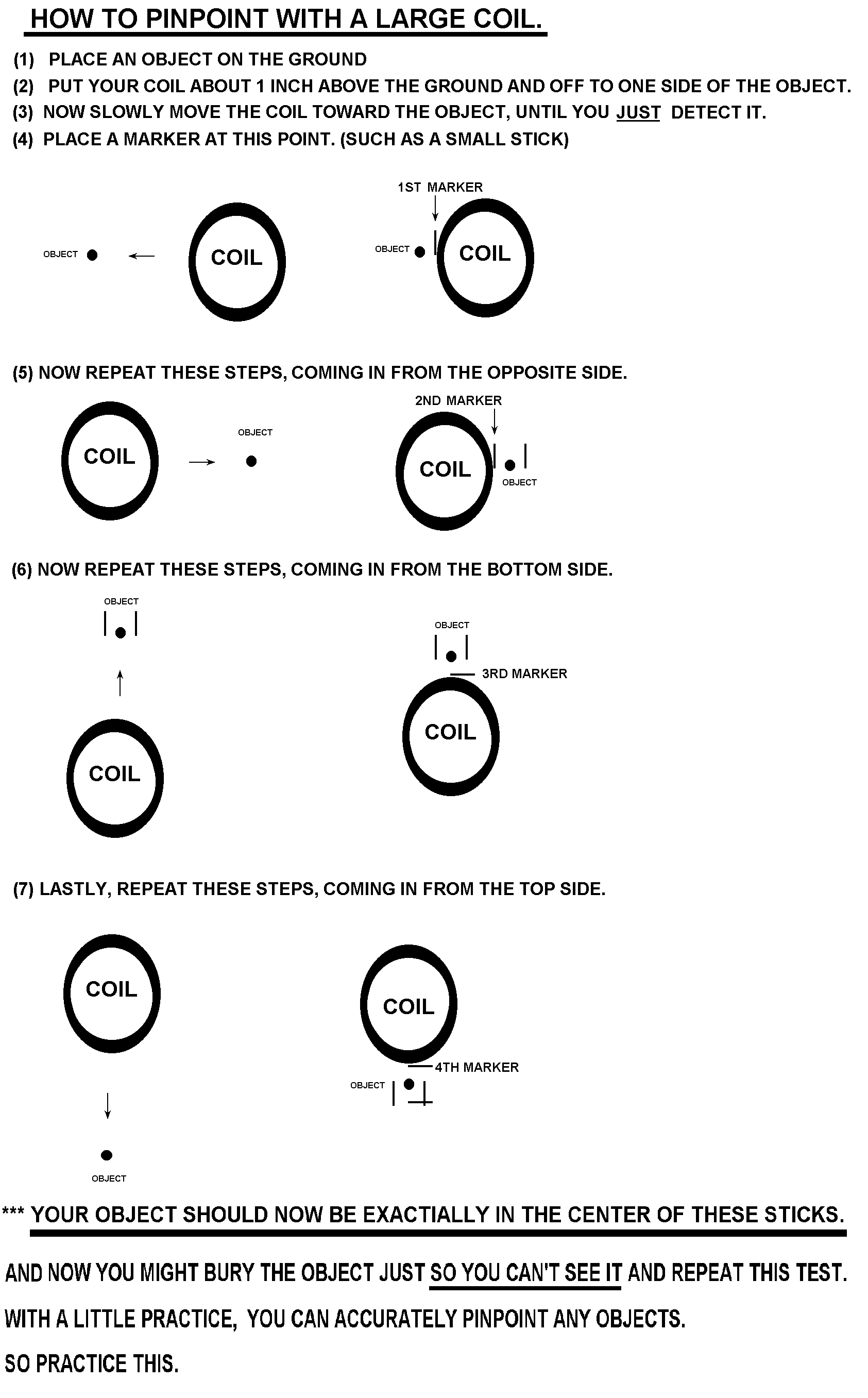 With some Practice, you can pinpoint objects using a PI detector, even with a large Coil.
