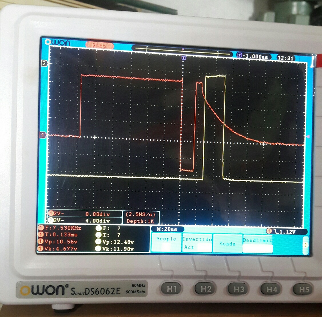 I have the potentiometer with a resistor in series and I see the waveform as I turn the potentiometer and this is the best decay curve I get, in all cases they revolve around 1k (Translated)