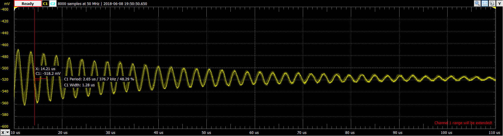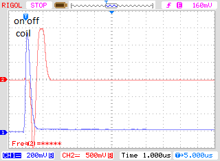 I see the trigger is one division different on todays scope trace, maybe 1.5usec delay today vs 3usec delay yesterday.