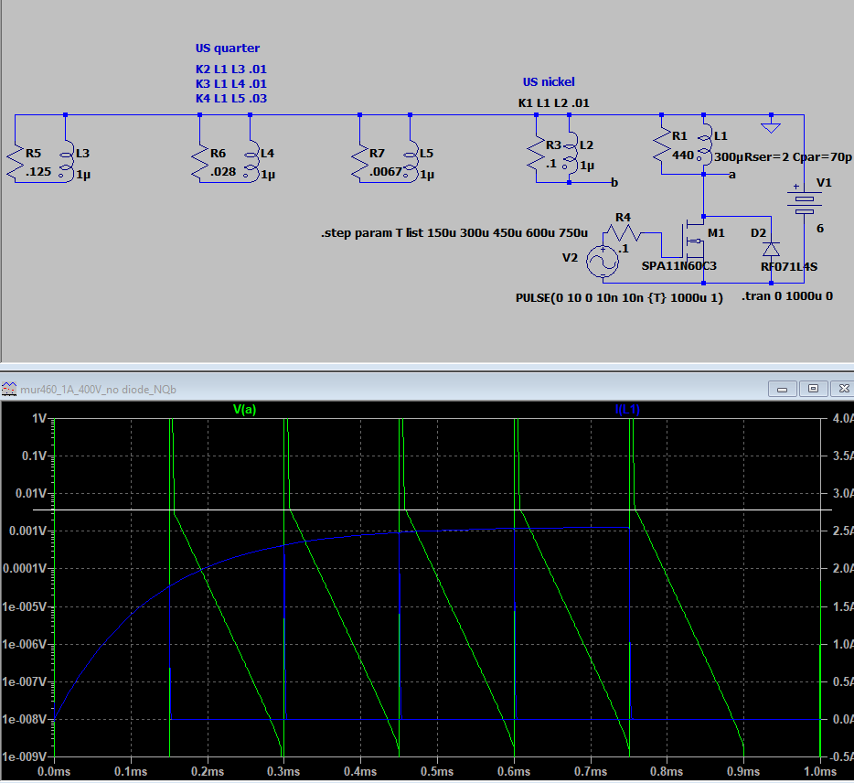 I may be totally mistaken (again) but changing the resistor in series with the coil also changes the TX voltage across the coil so the actual 5T (or any T) current is different. A better test (for me) would be to eliminate the series resistor and instead increase TX voltage. This makes it reach (previous) 1T the desired current sooner. It takes just as long to reach the 1T current level but it is higher because the 99% 5T goal current will be higher with higher TX voltage. (Correct?)
