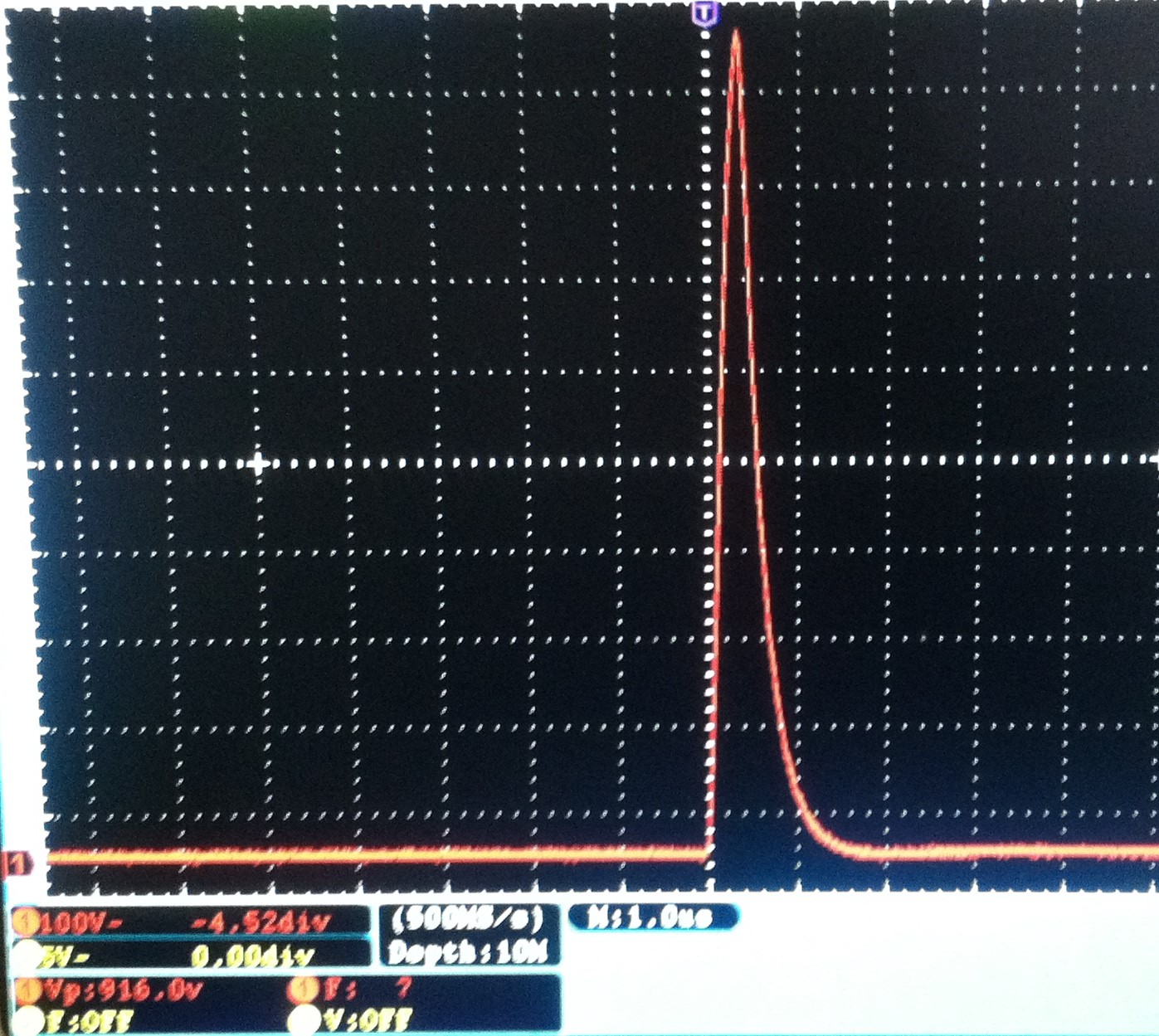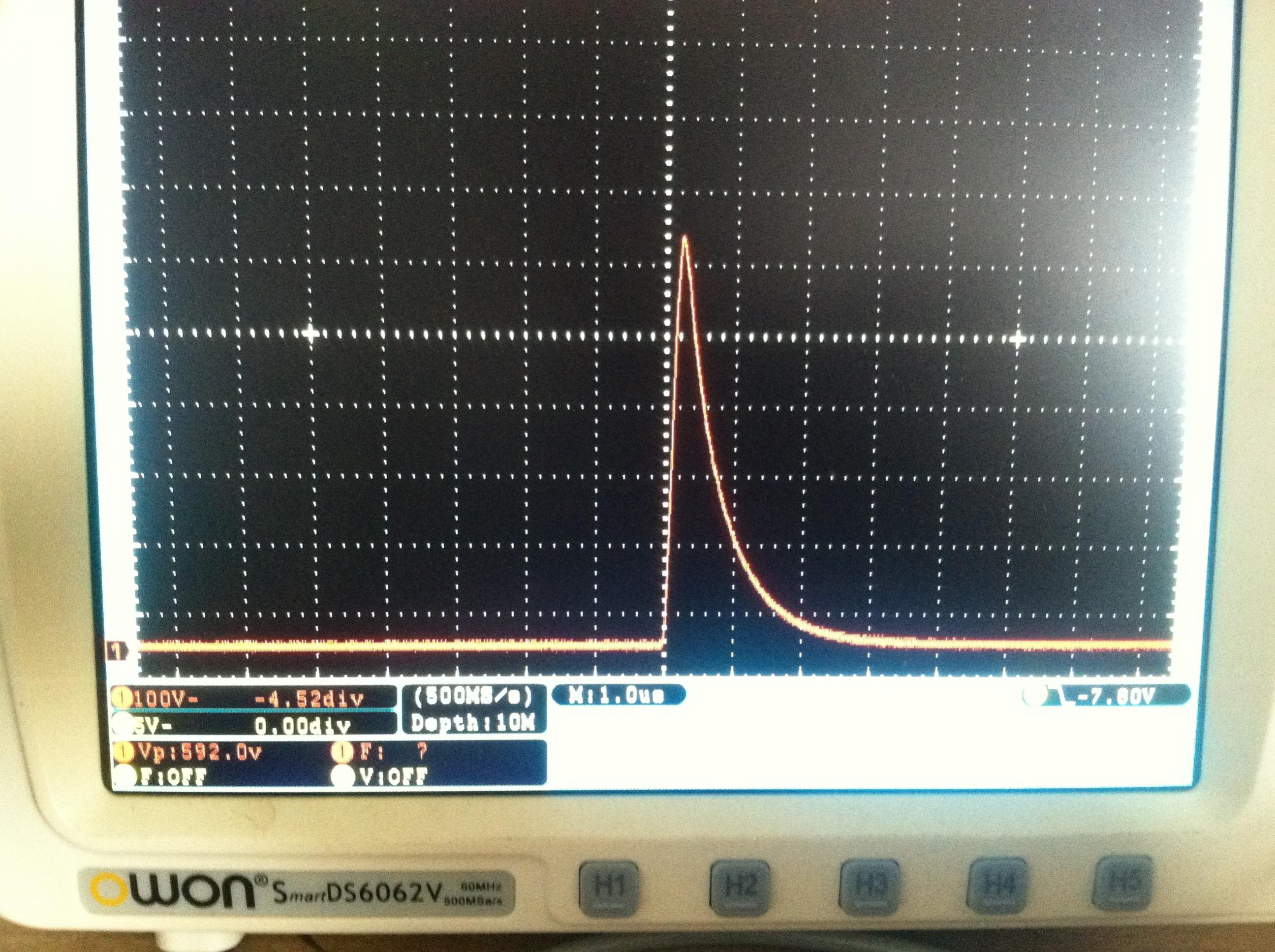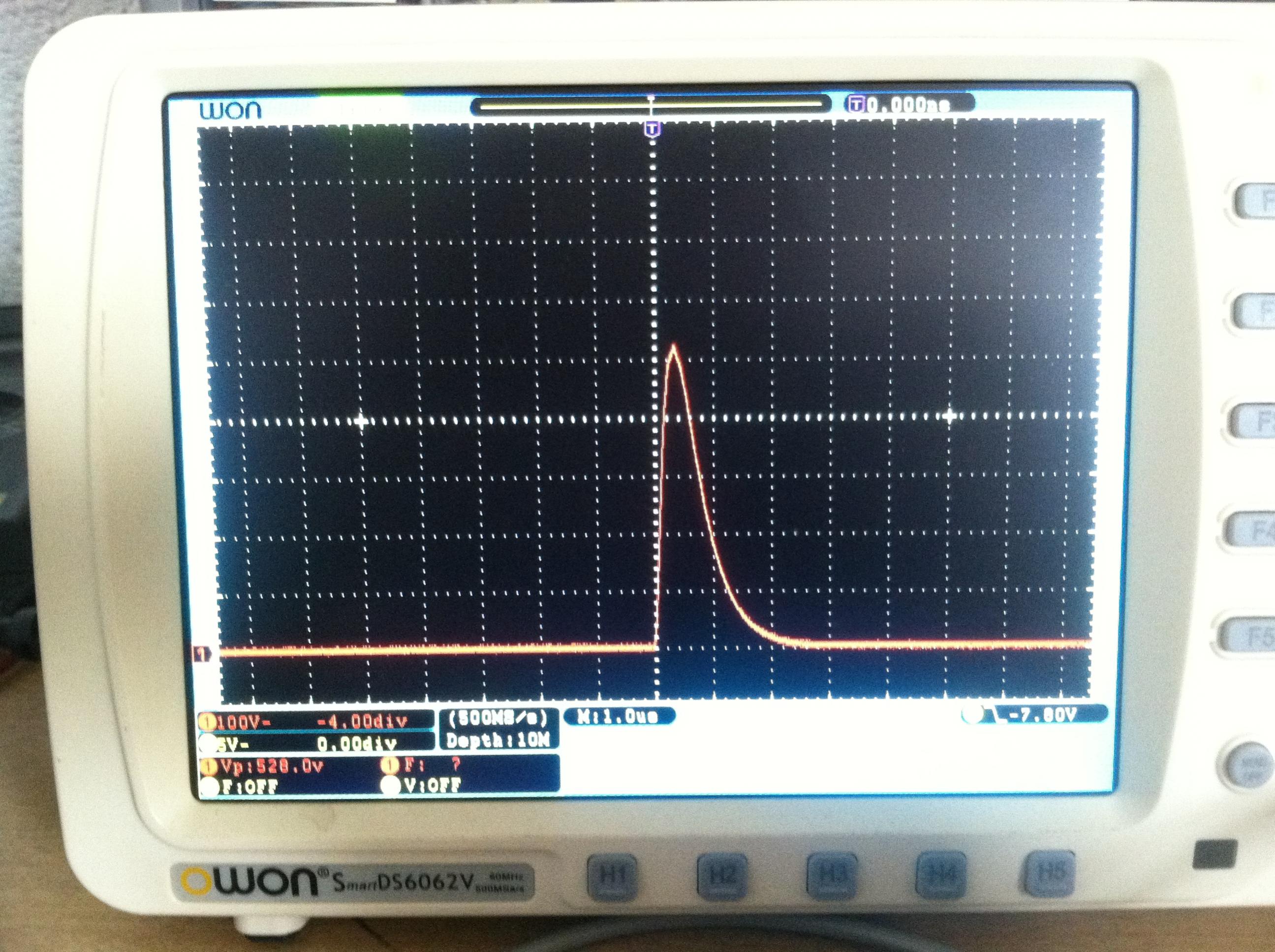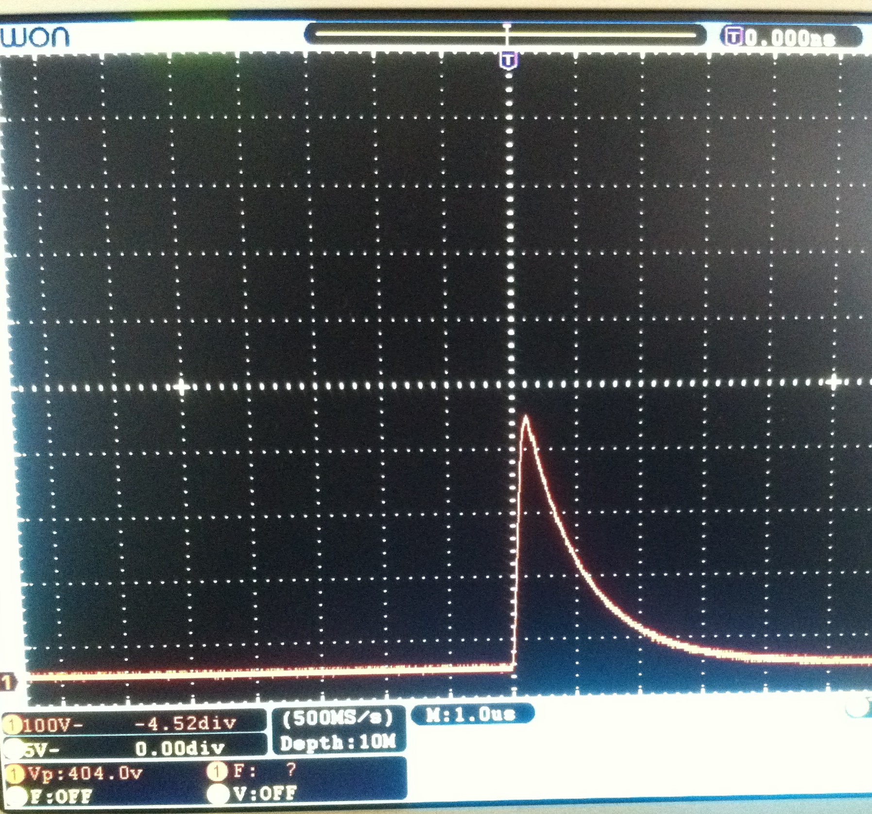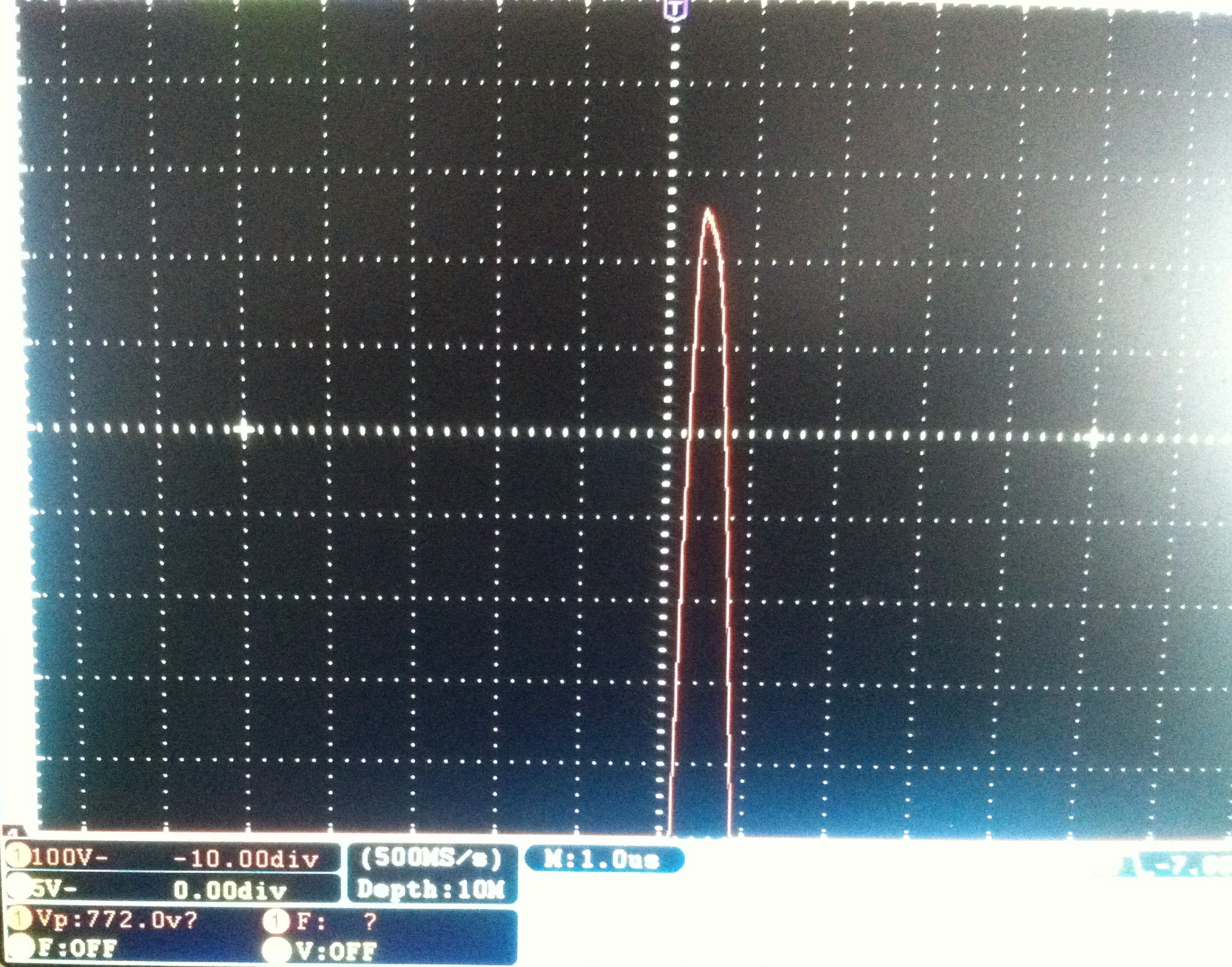 You can see the higher you let it go before you hit it with the damping resistance the faster it will come to zero. If you have a very keen eye you will have seen in my 900 volt adjustment the voltage goes below 0V just. High gain preamp will have that in the basement. I either need to fire the scr sooner,or use a lower value resistor. You might also be wondering why a 900 volt Mosfet will not avalanche at 1272 volts of flyback,I can't answer that one except for production tolerances variance,most mosfets,and igbts I have seen avalanche higher than the datasheet value.